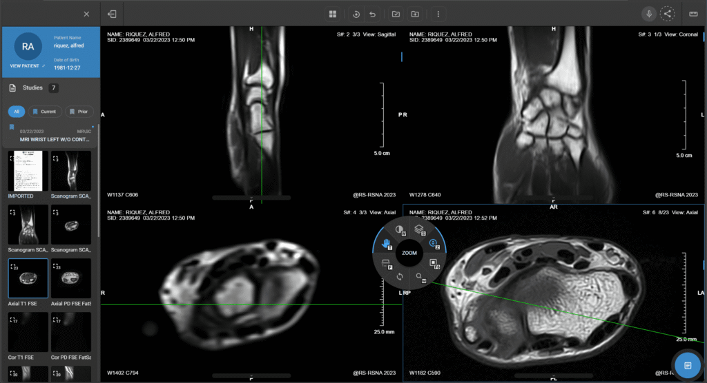Soporte para mediciones y análisis orientados a oncología y vascular, mejorando reproducibilidad para estadificación y seguimiento.